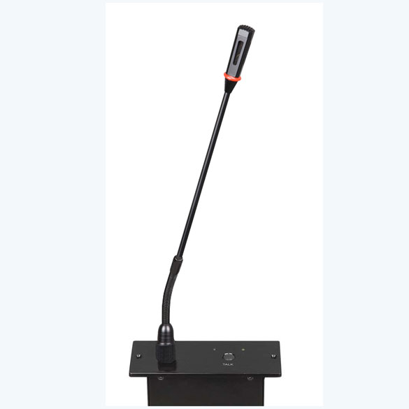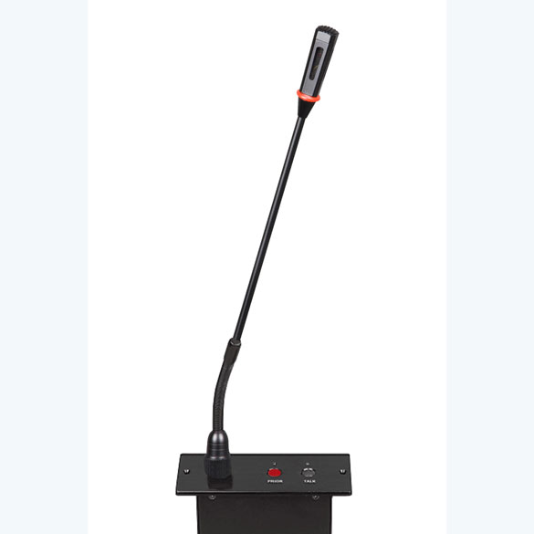 ◆話筒音頭采用最新聲學(xué)研究成果,使用金屬鋁合金四方形結(jié)構(gòu);使得語(yǔ)音更加清晰厚實(shí),頻響寬廣,靈敏度高不易產(chǎn)生嘯叫等持點(diǎn)。 ◆嵌入式底座,穩(wěn)固大方,鵝頸和底座設(shè)有紅色工作指示燈環(huán) ◆自帶2.1米8P公頭電纜,單元之間以手拉手方式連接 ◆話筒開(kāi)啟/關(guān)閉按鍵直接顯示工作狀態(tài),操作直觀簡(jiǎn)單,有效防止誤操作 ◆數(shù)字DSP電路處理,最大限度減少失真,使語(yǔ)音更加清晰,頻響更寬 ◆輸入靈敏度高,頻響寬,不易產(chǎn)生嘯叫 ◆電源由主機(jī)單元提供DC18V,屬安全電壓 ◆抗手機(jī)、RF射頻干擾